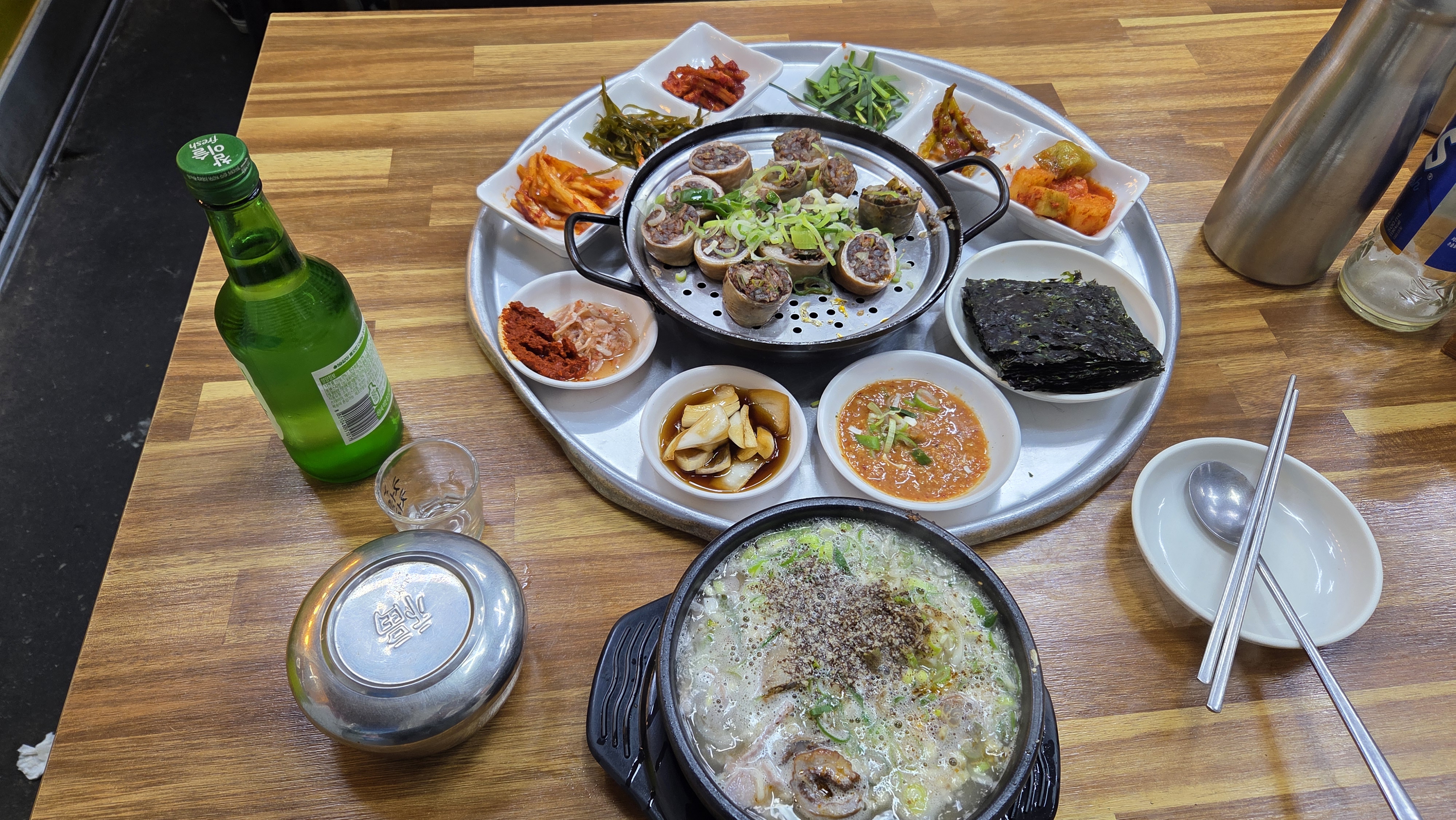 뭘 먹어야 하나 고민하며 주변을 어슬렁 거리던 중, 맛집 검색을 했더니 근처에 맛집이 하나 있더군요 ! 바로 순대국!!, 순대, 홍어 등을 파는 '일경식당' 이었습니다. 왠지 모르게 이끌려 들어 갔는데, 맙소사! 딱 한 테이블이 남아있는 행운까지! 알고 보니 그곳은 미식의 대가, 허영만 화백의 '식객'에도 등장 했던 숨겨진 보석 같은 맛집 이었습니다! 백반기행 세트 (순대랑 순대국)를 시켜서 정말 꿀맛 같은 저녁 식사를 즐겼습니다. 역시, 힘들게 일한 뒤 먹는 밥맛은 꿀맛이죠!